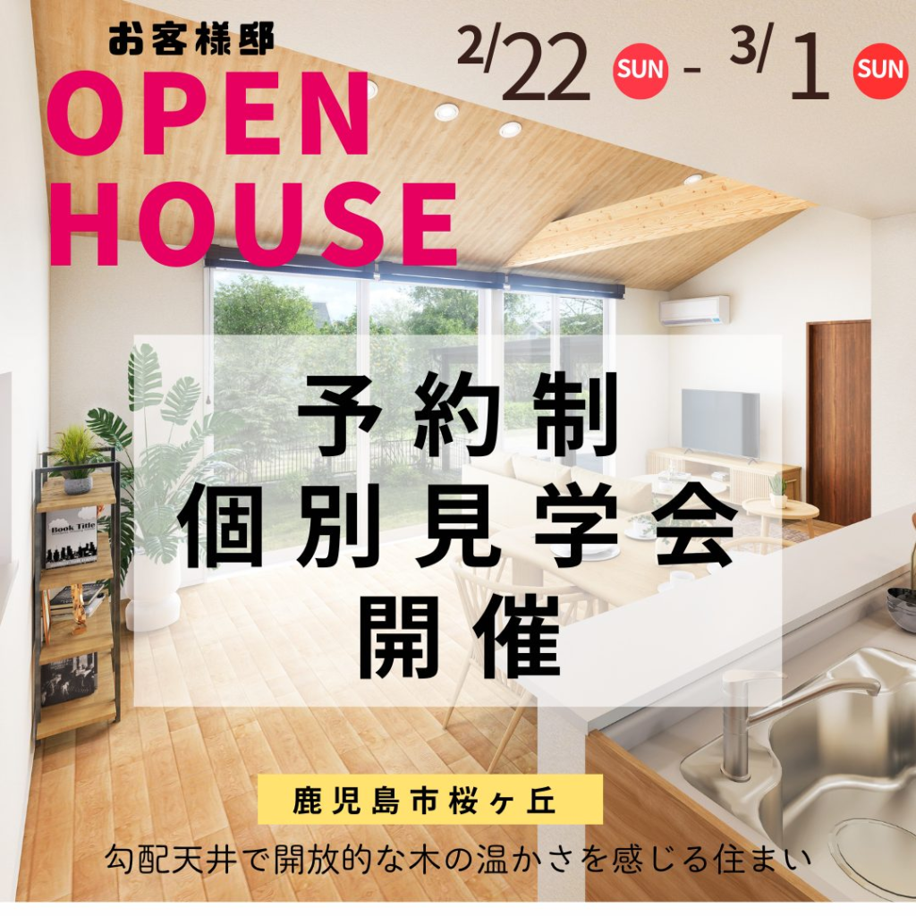 2月21日(土)~2月23日(月) 完成見学会【鹿児島市田上台】